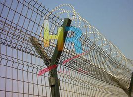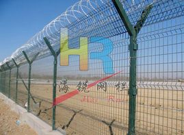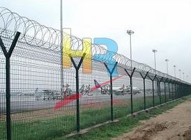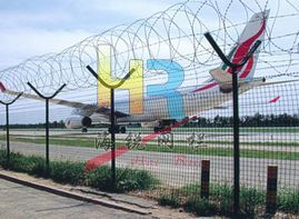機(jī)場護(hù)欄網(wǎng)又稱作“Y型安全防御護(hù)網(wǎng)”,由Y型支架立拄,加強(qiáng)型焊接片網(wǎng),安全防盜連接件和熱鍍鋅刀片刺網(wǎng)組成,是強(qiáng)度和安全防御性級別很高的圍界護(hù)欄網(wǎng)產(chǎn)品。被廣泛應(yīng)用在機(jī)場、軍事基地等高安全場所。這種護(hù)欄網(wǎng)的突出特點(diǎn)就是美觀實(shí)用、安全性高、防攀爬能力好,網(wǎng)體連接方式采用特制SBS緊扣件,有效防止人為的破壞性拆卸,橫向四道折彎加強(qiáng)筋,使網(wǎng)面強(qiáng)度顯著增加。
